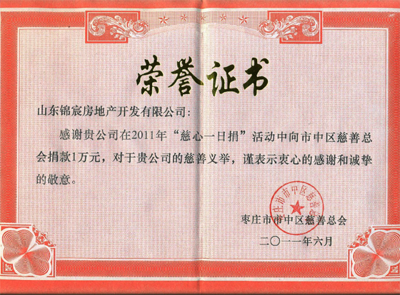 6月1日,山東錦宸房地產(chǎn)開發(fā)有限公司為積極響應棗莊市政協(xié)舉行的“慈心一日捐”活動,懷著對困難群眾的深厚感情奉獻愛心,為棗莊市市中區(qū)慈善總會愛心捐款10000元整。此次活動,不僅是弘揚中華民族傳統(tǒng)美德的善舉,更是每個單位應盡的社會責任,山東錦宸以實際行動為建設和諧棗莊貢獻力量。