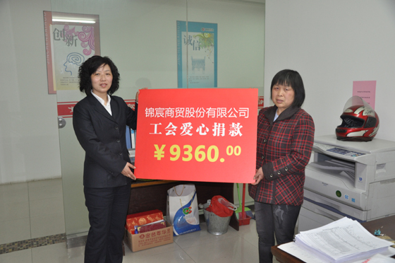 近日,錦宸百貨工會組織了愛心募捐活動。原錦宸百貨保潔員祝友蘭,今年三月因身體不適被姜堰市人民醫(yī)院檢查診斷為:肝臟惡性腫瘤,在接受醫(yī)院的第一個療程治療后,因經(jīng)濟困難,辦理出院。錦宸百貨工會在得知此事后,立即向全體員工發(fā)出倡議,希望員工伸出援助之手,為正處于困難中的祝友蘭撐起一片蔚藍的天。