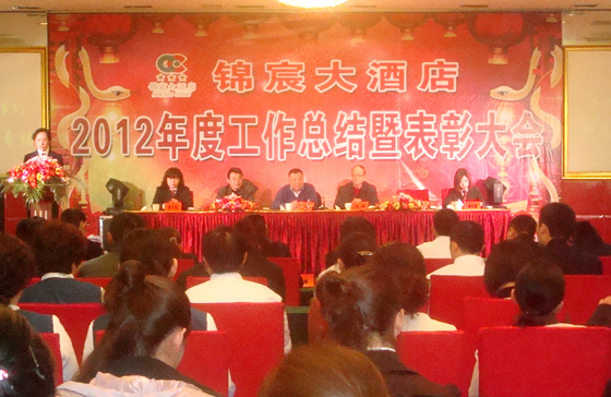 2月5日,錦宸大酒店2012年度工作總結(jié)表彰大會在宴會大廳召開。會上,酒店副總經(jīng)理張躍琴代表管理班子總結(jié)了酒店2012年度的工作,并對2013年的工作進(jìn)行了部署。