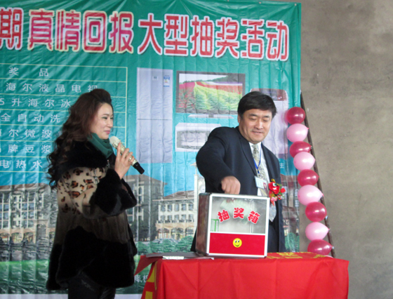 為回報廣大業(yè)主,整個抽獎活動,設(shè)立特等獎一名(55寸海爾液晶電視)、一等獎二名(225升海爾冰箱)、二等獎三名(海爾洗衣機)、三等獎六名(海爾微波爐)、四等獎十名(九陽豆?jié){機)、紀念獎若干名。抽獎現(xiàn)場,歌舞相伴,精彩紛呈,濃濃的喜慶氣氛將業(yè)主帶入了歡樂的海洋。