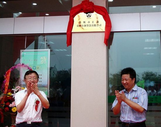 開業(yè)儀式上,泰州市副市長(zhǎng)丁士宏、我市市委書記王仁政為匯鑫農(nóng)村小額貸款有限公司揭牌。