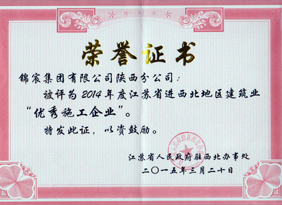 西安分公司緊抓市場(chǎng)開(kāi)拓、安全生產(chǎn)和文明施工,在年度優(yōu)秀施工企業(yè)和優(yōu)秀建造師評(píng)選活動(dòng)中,被江蘇省人民政府駐西北辦事處評(píng)為江蘇省進(jìn)西北地區(qū)建筑業(yè)“優(yōu)秀施工企業(yè)”,劉源同志獲得江蘇省進(jìn)西北地區(qū)企業(yè)“優(yōu)秀建造師”稱號(hào)。